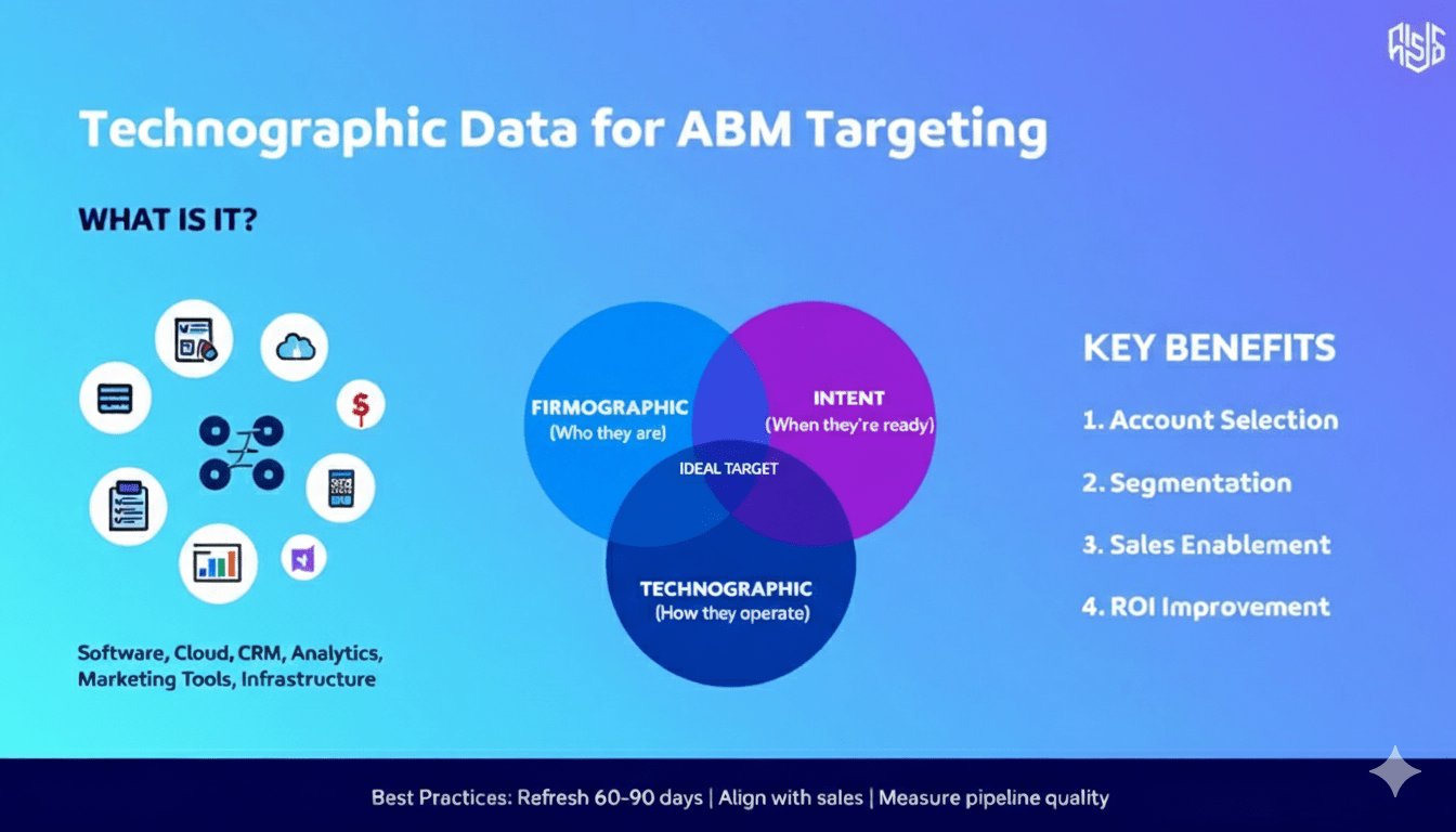 - Technographic data helps ABM teams target accounts based on actual technology usage, not assumptions.